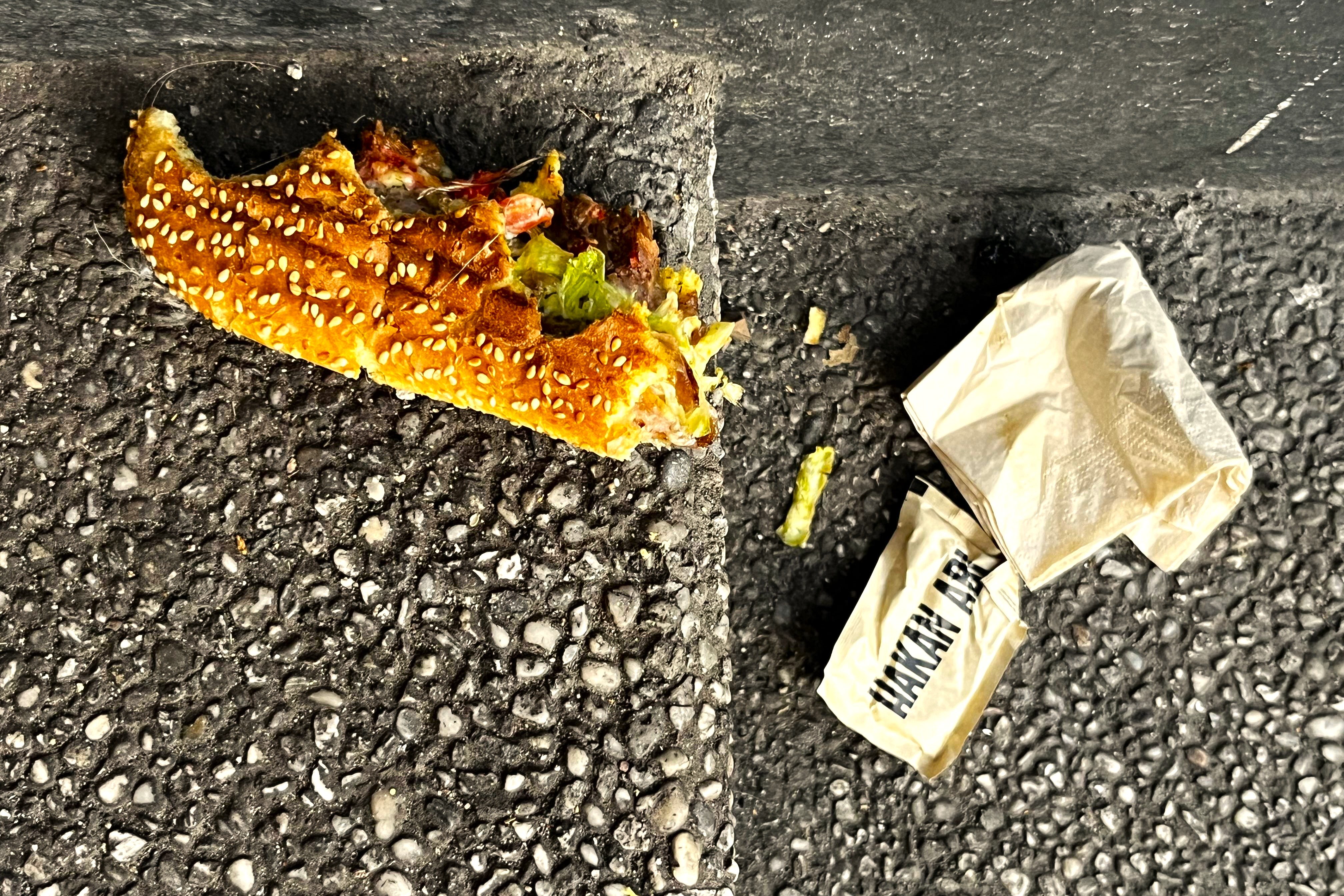 Schmeckt nicht jedem – Reste eines Trend­dö­ners in einem Haus­ein­gang in der Stern­schanze. Foto: privat.